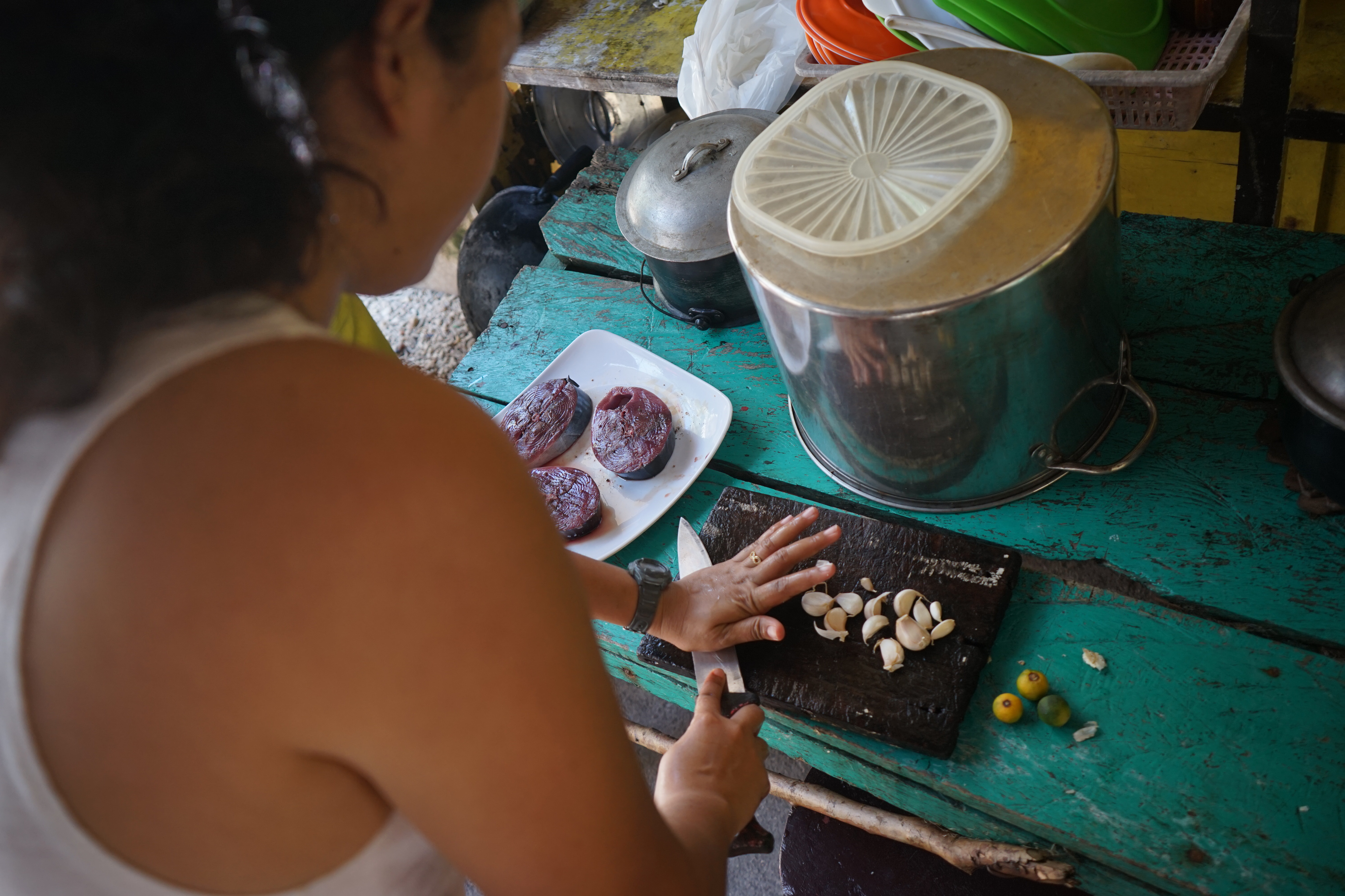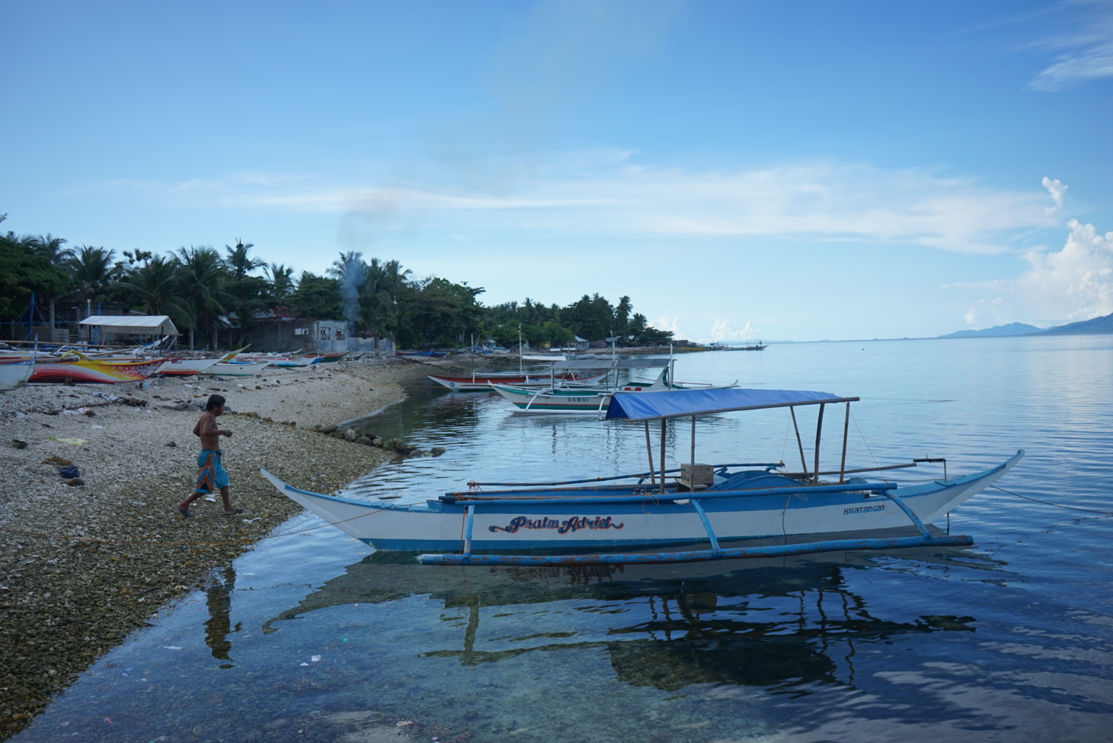 L’arrivée à Higatangan ressemble presque à une scène de film. À mesure que le bangka s’approche de l’île, on aperçoit ses palmiers luxuriants, le sable blanc qui borde cette grande île flottante, et une mer azur, douce et veloutée, qui se meut au rythme du vent.